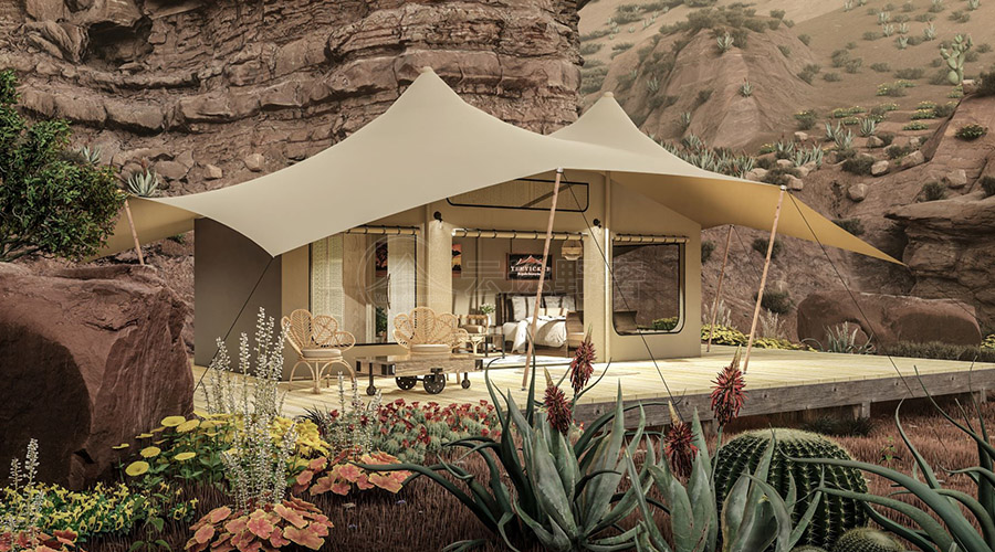 景区帐篷酒店相比传统酒店建筑具有更高的灵活性和成本效益。帐篷酒店是可拆装移动的建筑,不需要复杂的地基建设,可以在较短时间内快速搭建和拆除。这种灵活性使得帐篷酒店能够根据景区的季节变化和游客需求进行灵活调整,提高运营效率。同时,帐篷酒店的建设和运营成本相对较低,为景区提供了更为经济的住宿选择。