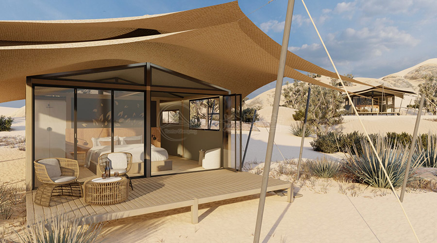 帐篷酒店的长寿命密码,藏在其“可生长”的模块化基因中。区别于传统建筑的固定形态,帐篷酒店采用标准化铝合金框架与可拆卸连接件,每个模块既是独立单元,又能通过螺栓拼接实现横向扩展或纵向叠加。这种设计使帐篷酒店能随运营需求“进化”:当客流量增长时,可在原有结构上增设卧室模块;当功能升级时,可替换为智能玻璃穹顶或光伏一体化屋顶。云途篷房为沙特AlUla沙漠设计的帐篷酒店,通过模块化组合实现了从20间客房到200间度假村的跨越,而其核心框架结构在15年运营中未出现任何变形。