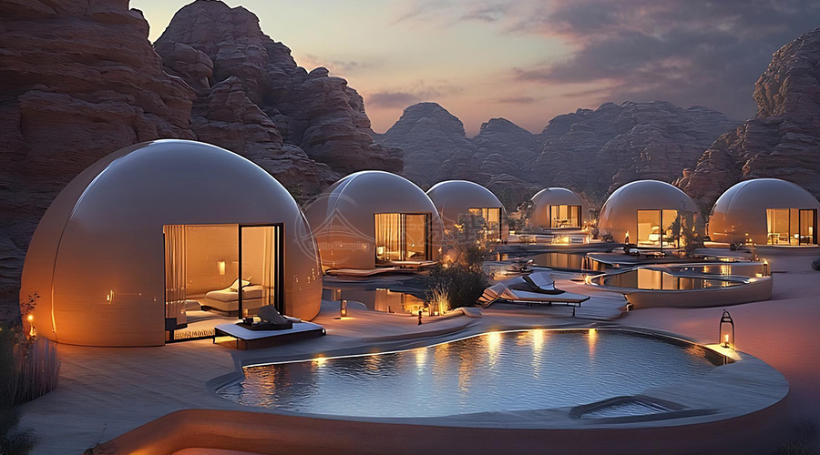 在历史文化类帐篷营地,云途为帐篷配备 AR 导览眼镜,游客佩戴后,可在帐篷内及营地周边看到叠加的历史虚拟场景。如在西安周边的营地,游客能 “看到” 古代长安城的建筑风貌,还能与虚拟的唐代仕女互动,聆听历史故事;在敦煌的营地,AR 技术可将莫高窟壁画 “搬” 到帐篷内,游客可近距离欣赏壁画细节,感受丝路文化的魅力。