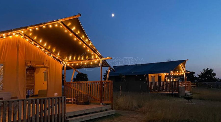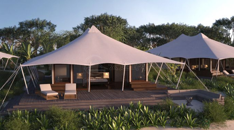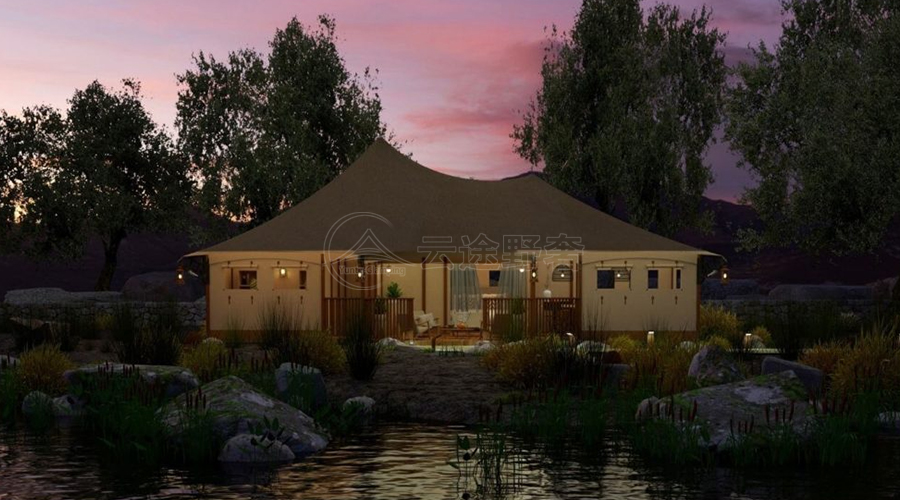 在地形适配方面,云途创新模块化结构设计,解决了复杂地形的搭建难题。帐篷组件可实现标准化生产与快速组装,无需复杂的施工设备,既能适应山地、沙滩、戈壁等不同地形,又能根据场地大小灵活调整内部空间布局,适配不同项目的场地限制。同时,模块化设计便于后期的拆卸与迁移,对于临时营地或需要调整布局的营地而言,大幅降低了运营成本与施工难度。